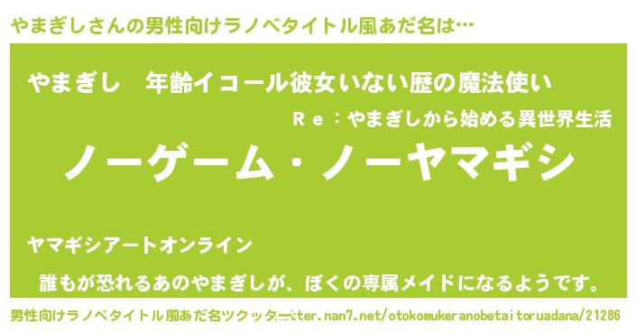| 女子向けラノベタイトル風あだ名 | 『死神やまぎしの再婚』『闇のやまぎし』 |