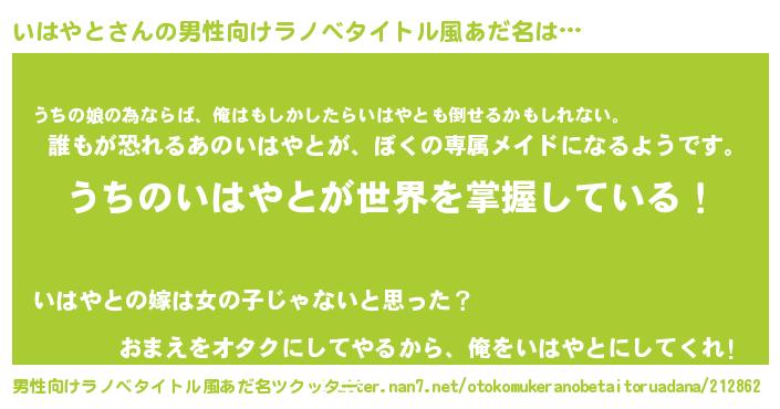 | 女子向けラノベタイトル風あだ名 | 『男装いはやとの憂鬱な任務』 |