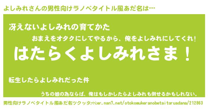 | 意味不明あだ名 | 『よしみれフォーエバー』 |
