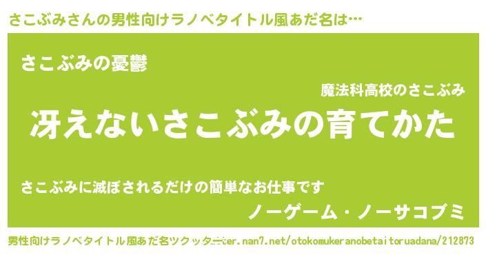 | 意味不明あだ名 | 『ペロリンさこぶみ』『自称さこぶみ』 |