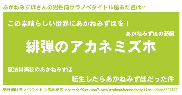 | 胡散臭い通販商品みたいなあだ名 | 『ハリウッド女優が絶賛した100年もののヴィンテージワイン…その名も「あかねみずほ」』 |