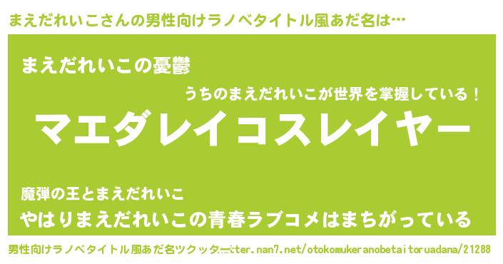 | 胡散臭い通販商品みたいなあだ名 | 『必ず成功する水晶球…その名も「まえだれいこ」』 |