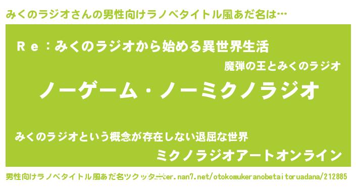 | 女子向けラノベタイトル風あだ名 | 『みくのラジオ恋絵巻』 |