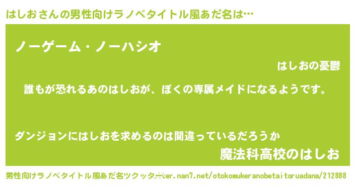 | 女子向けラノベタイトル風あだ名 | 『異世界でカフェはしおを開店しました。』 |
