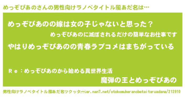 | 意味不明あだ名 | 『めっぞぴあのフォーエバー』 |