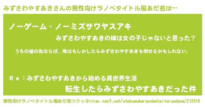 | ファンタジー風あだ名 | 『エターナルミズサワヤスアキー』 |