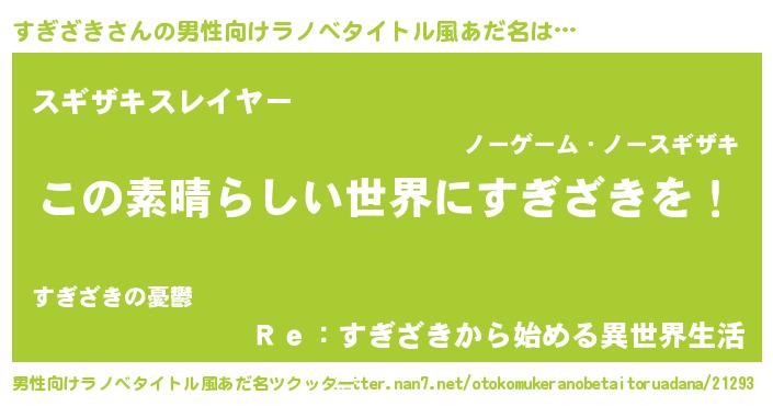 | 女子向けラノベタイトル風あだ名 | 『悪役すぎざきに転生したようですが、知った事ではありません』 |