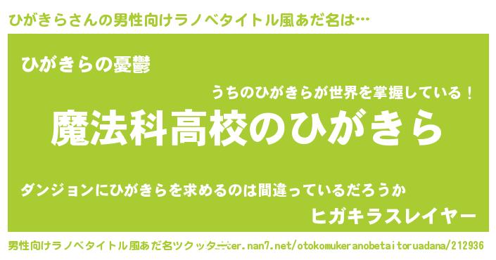 | ヒーロー風カッコイイあだ名 | 『サイバー戦士ヒガキラ』『暗黒騎士ヒガ』 |