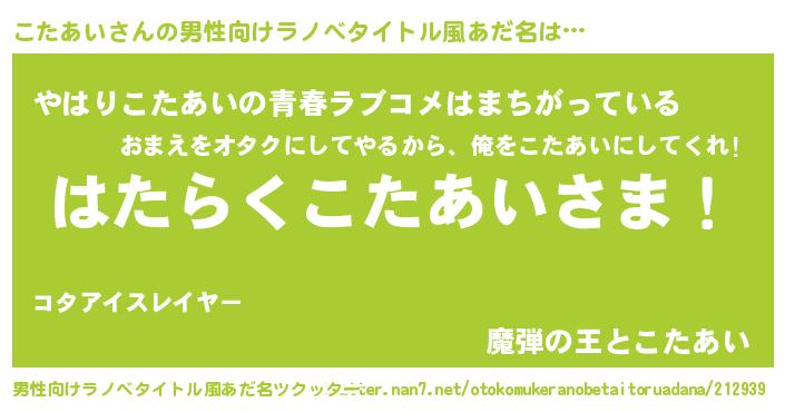 | 意味不明あだ名 | 『こたあいフォーエバー』『自称こたあい』 |