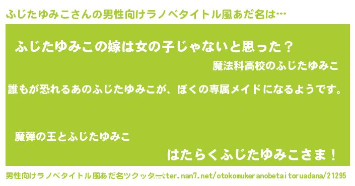 | ヘコむあだ名 | 『ふじたゆみこ(笑)』『ふじお』 |