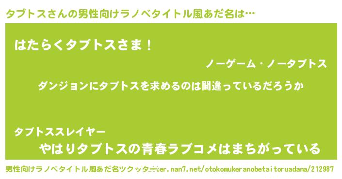 タブトスさんの男性向けラノベタイトル風あだ名をツクッター!