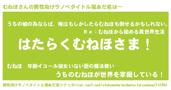 | ヒーロー風カッコイイあだ名 | 『ウルトラむねほマン』『最強戦士ムネホ』 |