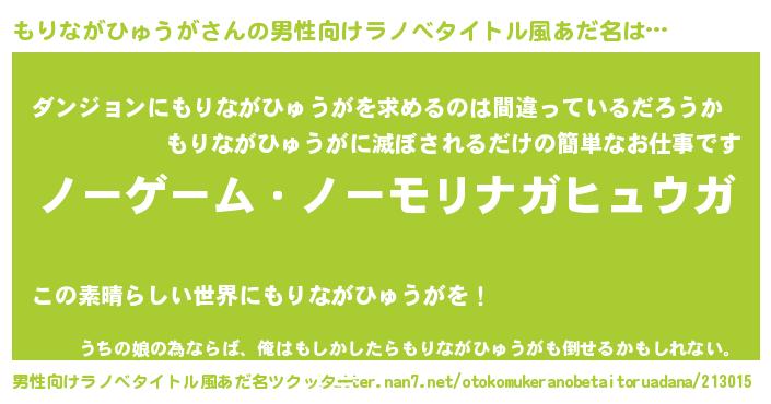 | ヒーロー風カッコイイあだ名 | 『慈愛の使者もりながひゅうが』 |