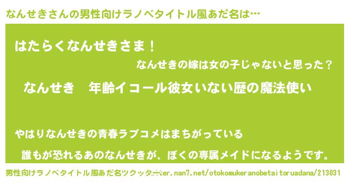 | 女子向けラノベタイトル風あだ名 | 『なんせきの玉の輿計画!』 |
