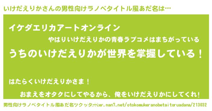 | 胡散臭い通販商品みたいなあだ名 | 『億万長者になれる霊験あらたかなお札…その名も「いけだえりか」』 |
