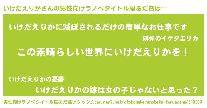| 胡散臭い通販商品みたいなあだ名 | 『あなたにだけ特別に提供する世界で10本だけ現存している希少なブランデー…その名も「いけだえりか」』 |