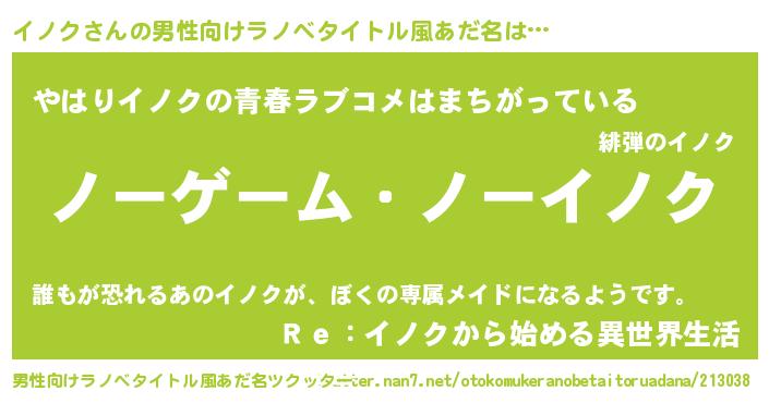 | ヒーロー風カッコイイあだ名 | 『天空の使者イノク』『究極戦士イノク』 |