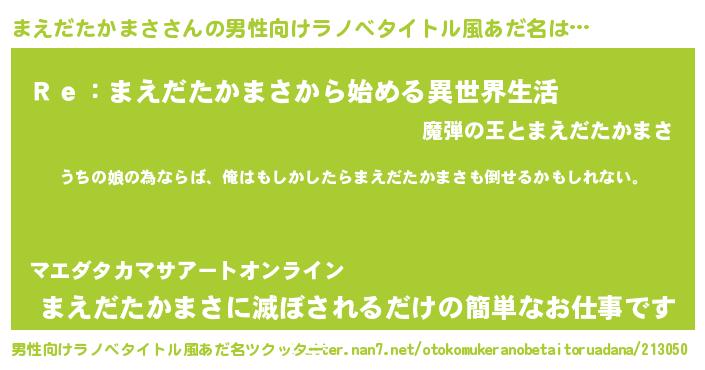 | 女子向けラノベタイトル風あだ名 | 『まえだたかまさの婚約者』 |