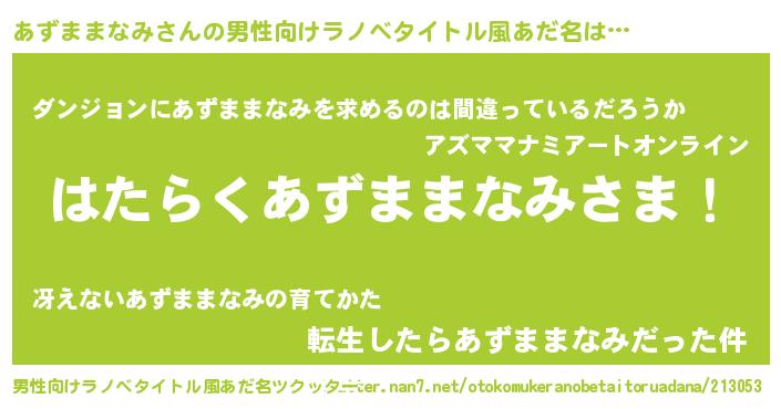 | 意味不明あだ名 | 『とにかく怪しいあずままなみ』 |