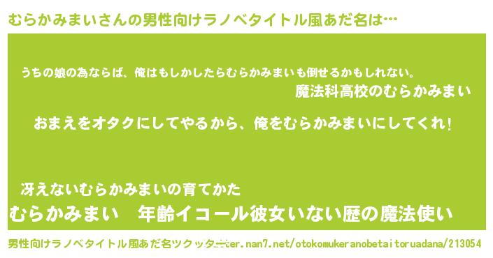 | 女子向けラノベタイトル風あだ名 | 『むらかみまい夫妻のなれそめ』 |