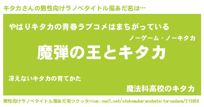 | 意味不明あだ名 | 『住所不定無職キタカ(3歳)』『自称キタカ』 |