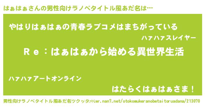 | 2回繰り返すあだ名 | 『もろもろ』『ははぁぁ』『ゆらゆら』 |