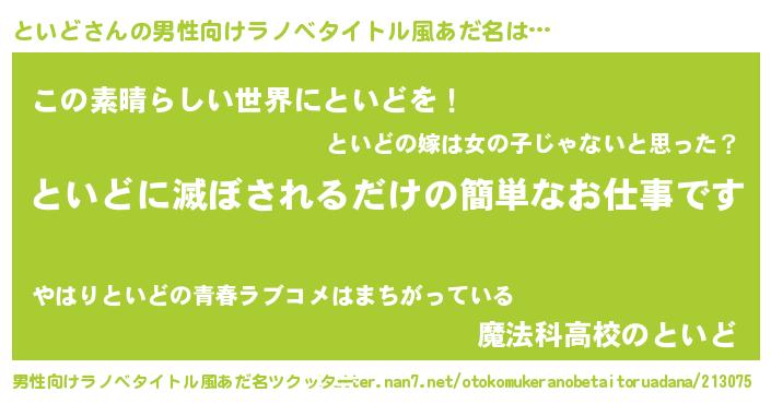 | 胡散臭い通販商品みたいなあだ名 | 『あなたにだけ特別に提供する100年もののヴィンテージワイン…その名も「といど」』 |