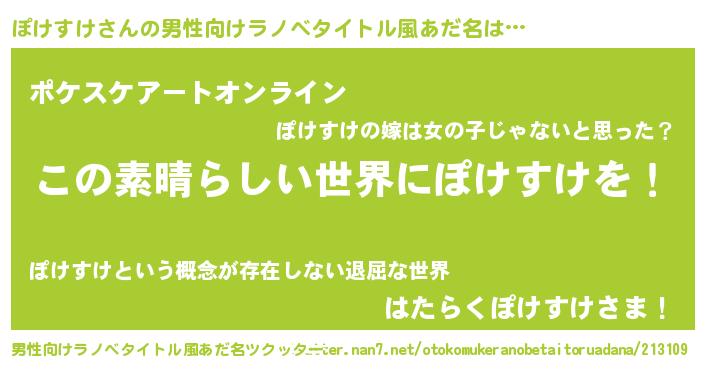 | 女子向けラノベタイトル風あだ名 | 『悪役ぽけすけに転生したようですが、知った事ではありません』 |