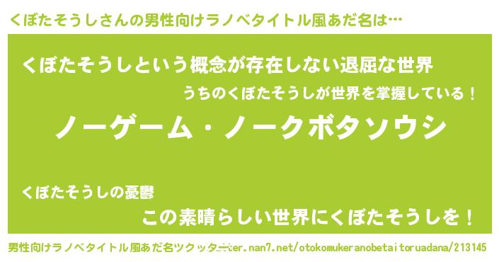| 女子向けラノベタイトル風あだ名 | 『死神くぼたそうしの再婚』 |