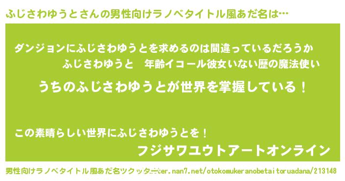 | 意味不明あだ名 | 『とにかく怪しいふじさわゆうと』 |