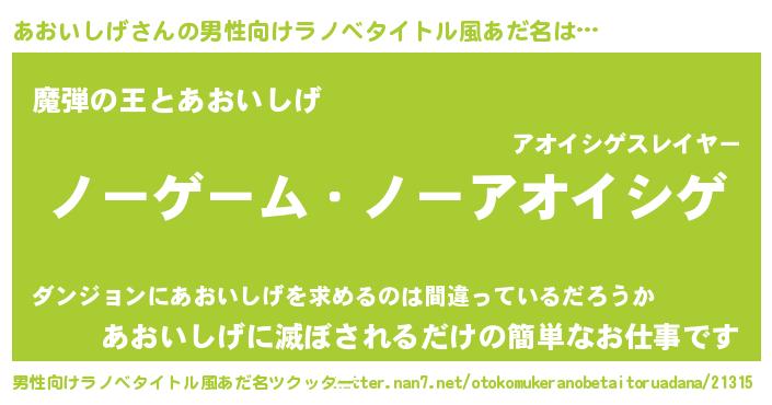 | 女子向けラノベタイトル風あだ名 | 『死神あおいしげの再婚』 |