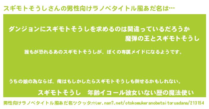 | 伝説のあだ名 | 『古より伝わる吟遊詩人スギモトそうし』 |