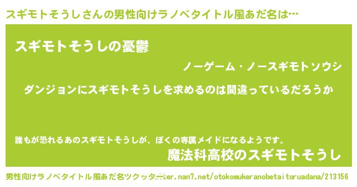 | 女子向けラノベタイトル風あだ名 | 『スギモトそうしは平凡を望む』 |