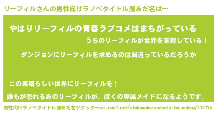 | 胡散臭い通販商品みたいなあだ名 | 『信頼と実績のペンダント…その名も「リーフィル」』 |