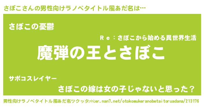 | ヒーロー風カッコイイあだ名 | 『仮面サボダー』『スーパーサボコ』 |