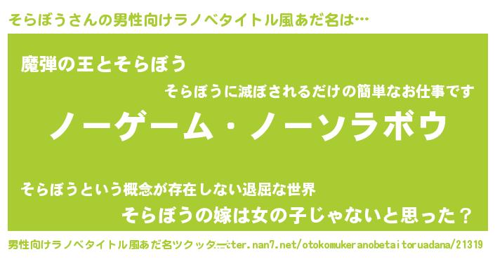 | 女子向けラノベタイトル風あだ名 | 『死神そらぼうの再婚』 |