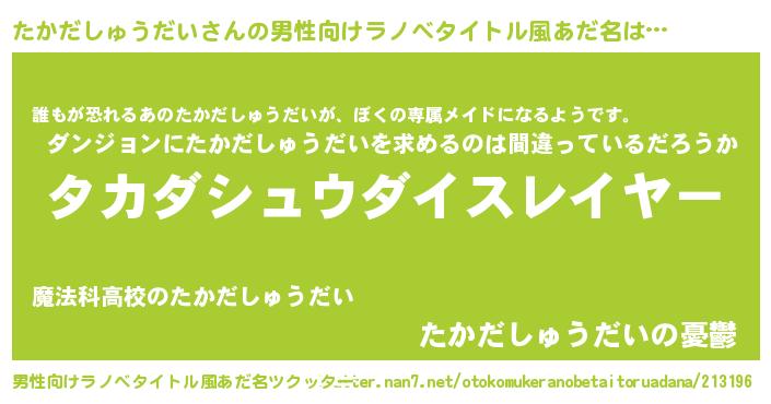 | 料理風あだ名 | 『たかだしゅうだいごはん』 |