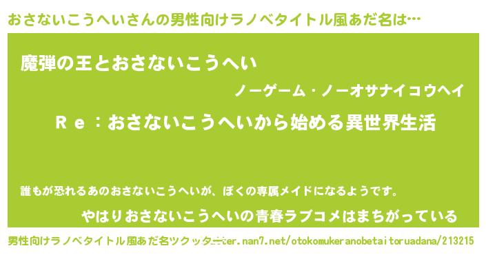 | 意味不明あだ名 | 『自称おさないこうへい』 |