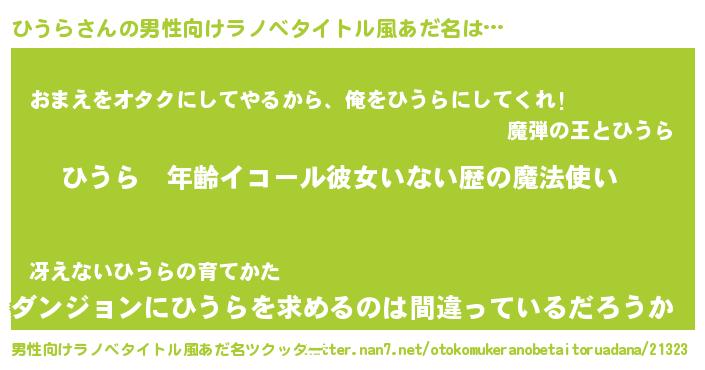 | ヒーロー風カッコイイあだ名 | 『慈愛の使者ひうら』『暗黒騎士ヒウ』 |