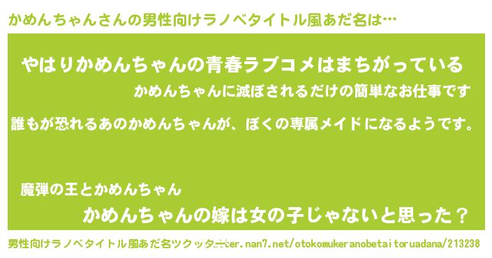 | 胡散臭い通販商品みたいなあだ名 | 『来世でも幸せになれる健康食品…その名も「かめんちゃん」』 |