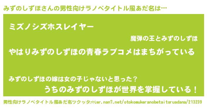 | 女子向けラノベタイトル風あだ名 | 『みずのしずほの雑貨屋さん』 |