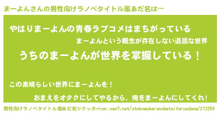 | 胡散臭い通販商品みたいなあだ名 | 『運命の人と巡り会える高級そうな壺…その名も「まーよん」』 |