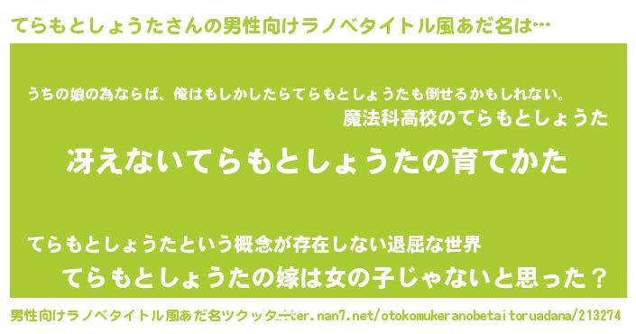 | 胡散臭い通販商品みたいなあだ名 | 『世界が平和になる高級そうな絵画…その名も「てらもとしょうた」』 |