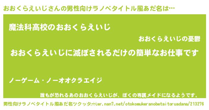 | 意味不明あだ名 | 『自称おおくらえいじ』 |