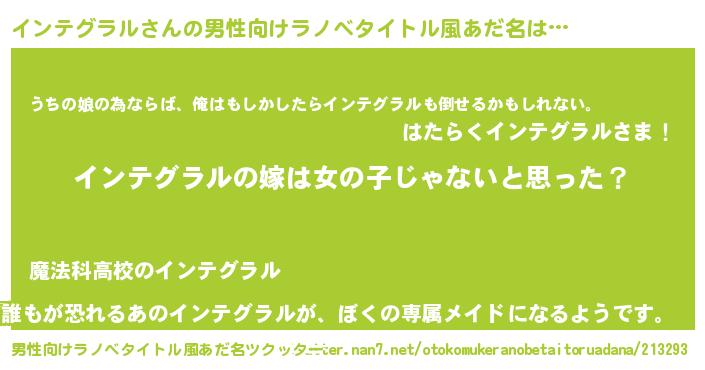 | 女子向けラノベタイトル風あだ名 | 『インテグラル様がみてる』 |