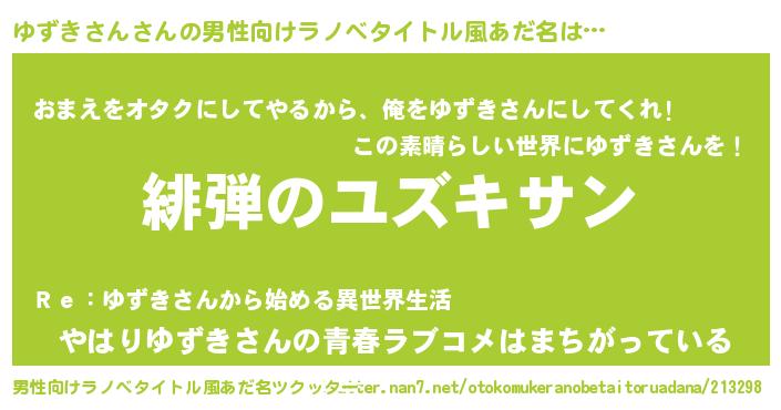 | 女子向けラノベタイトル風あだ名 | 『シンデレラゆずきさん家の靴箱館』 |