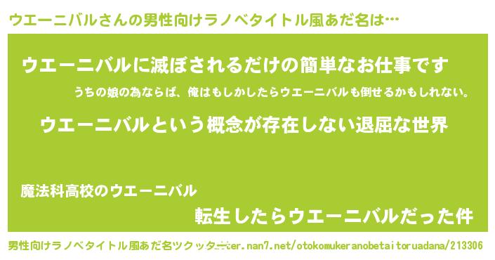 | 女子向けラノベタイトル風あだ名 | 『異世界で失敗しない100のウエーニバル』 |