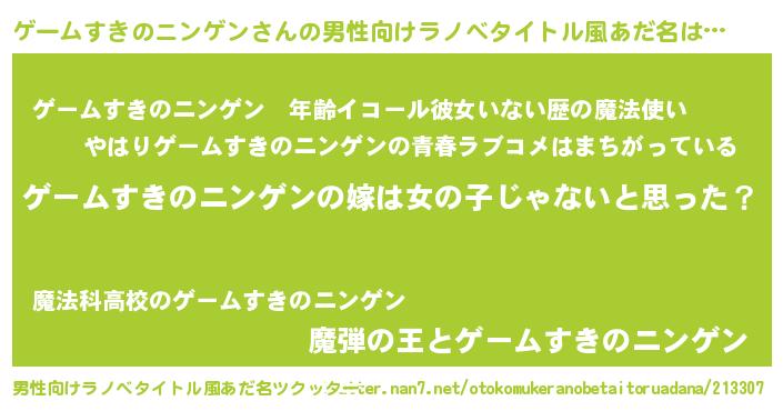 | 女子向けラノベタイトル風あだ名 | 『ゲームすきのニンゲン様がみてる』 |