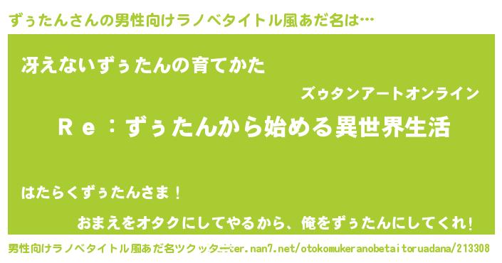 | 女子向けラノベタイトル風あだ名 | 『闇のずぅたん』『ずぅたん恋絵巻』 |