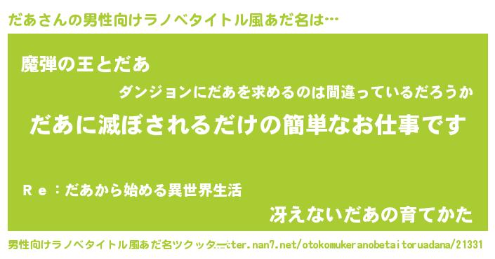 | 女子向けラノベタイトル風あだ名 | 『横柄だあと宰相陛下』『闇のだあ』 |